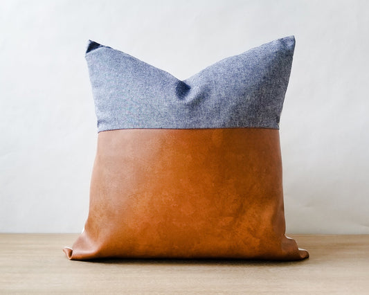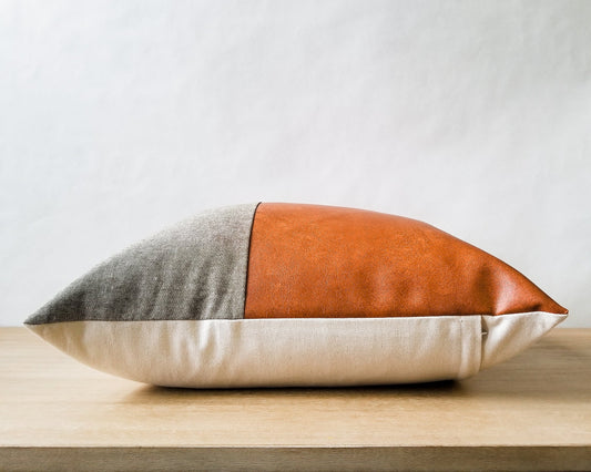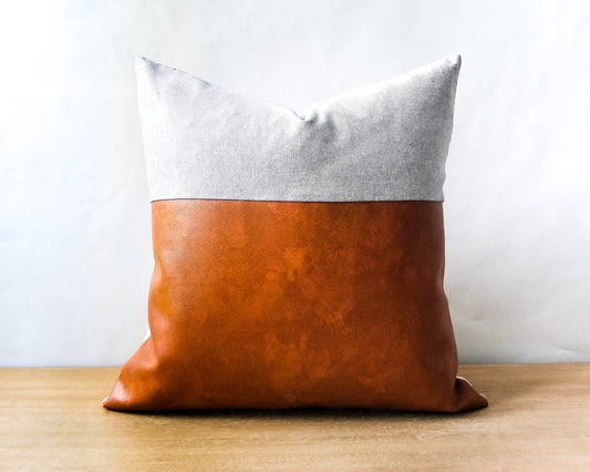 White Linen With Faux Leather CELINE Throw Pillow Cover