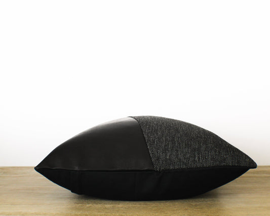All Black Woven Plus Faux Leather LUCCA Throw Pillow Cover