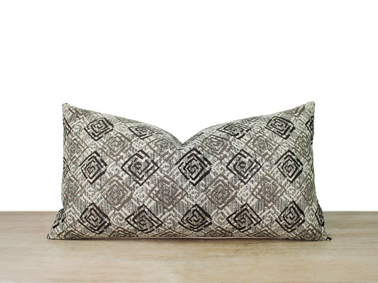 Cognac Stripe White and Black LUCCA Brushed Pebble Throw Pillow Cover