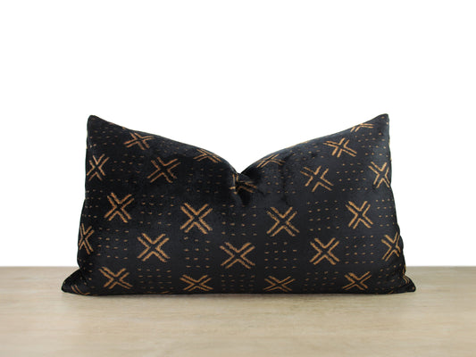 All Black Woven Plus Faux Leather LUCCA Throw Pillow Cover
