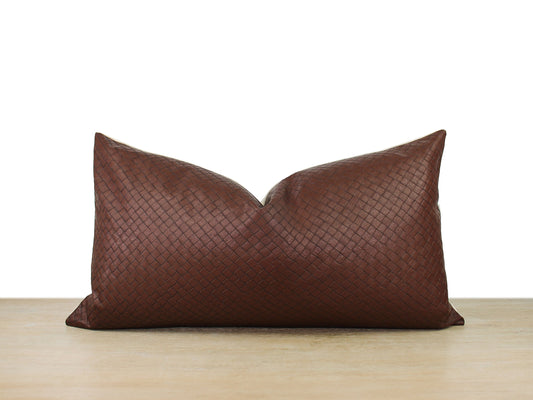 Brown Woven Embossed Faux Leather Front Pillow Cover