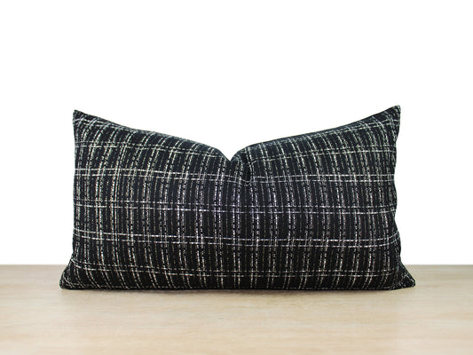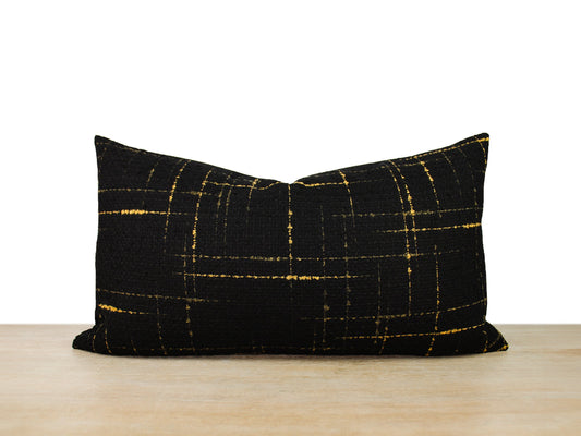 Gold Stripe Black Linen CELINE Throw Pillow Cover