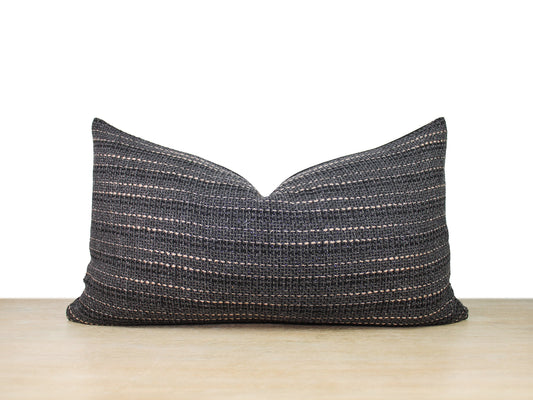Cognac Stripe White and Black LUCCA Brushed Pebble Throw Pillow Cover