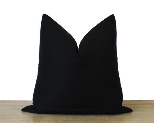 All Black Woven Plus Faux Leather EMMA Throw Pillow Cover