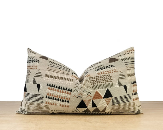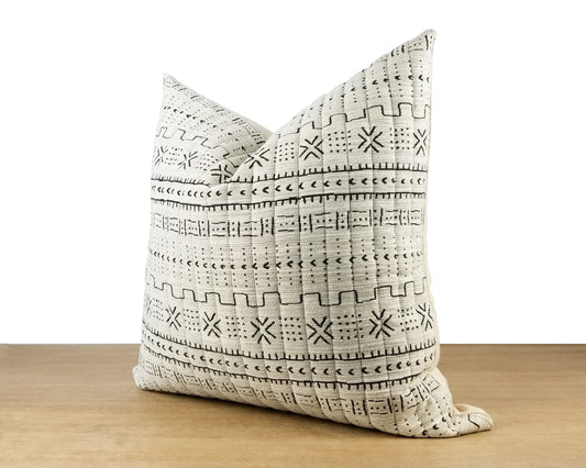 White Bogolan Quilted Jacquard Throw Pillow Cover